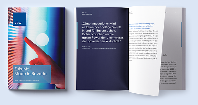 Gemeinsam mit Politik, Medien und Gesellschaft treten wir für unsere freiheitlich demokratische Grundordnung ein und leben die Soziale Marktwirtschaft. Neben Wettbewerbsfähigkeit, Innovationskraft, Vielfalt und Erhaltung unserer Lebensgrundlagen ist der soziale Frieden wichtig für uns alle. Deshalb gestalten wir gemeinsam unsere Zukunft mit fairer Arbeit, Chancengerechtigkeit und der Möglichkeit, sich in allen Regionen Bayerns frei entfalten und sein Leben gestalten zu können. Dafür steht die bayerische Wirtschaft.