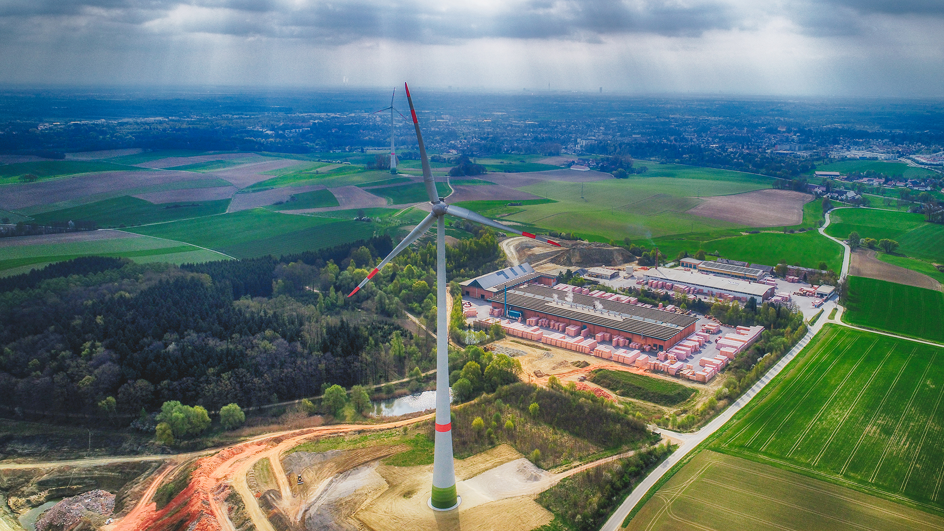 Die Ziegelindustrie konnte ihren CO2-Ausstoß gegenüber 1990 um mehr als 40 Prozent reduzieren. Mit der 2021 vorgelegten „Roadmap für eine treibhausgasneutrale Ziegel-industrie“ hat die Branche gezeigt, dass eine klimaneutrale Ziegelproduktion perspektivisch möglich ist. Unter Hochdruck arbeiten unsere Mitgliedsunternehmen daran, ihre Produktion so früh wie möglich treibhausgasneutral umzustellen. Dies erfolgt einerseits durch die weitere Einsparung von Energie durch hochmoderne Technik und die Forschung an neuen Verfahren, wie der Mikrowellentechnologie, und andererseits durch die Verwendung von Energie aus regenerativen Quellen. Windräder, PV-Anlagen und eine Anlage, die aus biogenen Reststoffen synthetisches Gas erzeugt, unterstützen den Transformationsprozess.